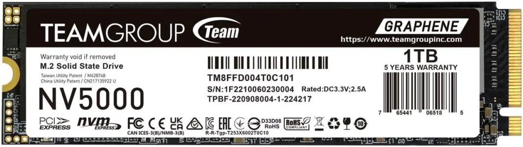 Deal: Team Group NV5000 M.2 2280 1TB PCIe 4.0 x4 with NVMe Internal Solid State Drive (SSD) TM8FGM001T0C101